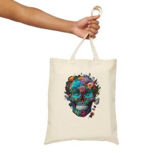 Introducing the Candied Skulls Tote Bag, a vibrant and stylish accessory inspired by the rich and colorful culture of New Mexico. This tote bag features bold and intricate designs, including the iconic sugar skulls, floral patterns, and geometric shapes that are synonymous with Mexican art and tradition.