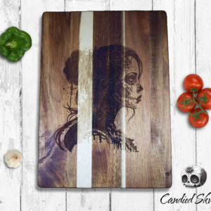 Laser-etched cutting boards are a new and innovative way to add a personalized touch to your kitchen tools. These cutting boards are made from high-quality materials such as bamboo and high quality woods. The laser etching process creates a permanent design that won’t fade, wear off or chip even after years of use. The design also adds an aesthetic appeal to your kitchen and makes a great conversation starter at any gathering. Aside from their appealing design, laser-etched cutting boards are durable and resilient, making them perfect for daily use. They are also easy to clean and maintain, which makes them an ideal addition to any kitchen. – sizes include handles. PRICES VERY ON QUALITY OF WOOD, SIZE AND DESIGN.