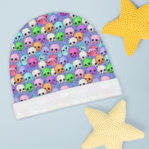 .: NB! Please note these beanies are pre-constructed. Solid background and full-bleed pattern maybe not cover 100% of the creasing area along the seams of the beanie.