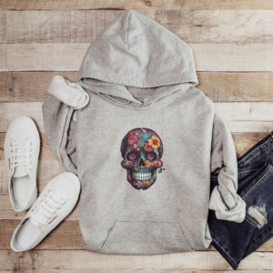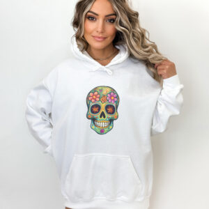 Introducing the Candied Skulls Hoodie, a cozy and stylish sweatshirt inspired by the vibrant and colorful culture of New Mexico. This unisex heavy blend hooded sweatshirt is relaxation itself. Made with a thick blend of cotton and polyester, it feels plush, soft and warm, a perfect choice for any cold day. In the front, the spacious kangaroo pocket adds daily practicality while the hood’s drawstring is the same color as the base sweater for extra style points.